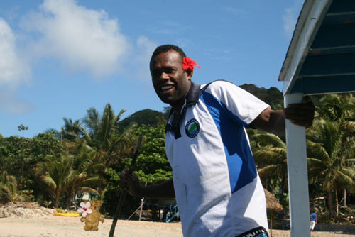 Ev put a flower behind my ear and said I should wear this so as I look more Fijian. I thought I would look more like a teddy girl but then I noticed that men put a flower behind their ear too. It�s just a Fijian thing to do.
