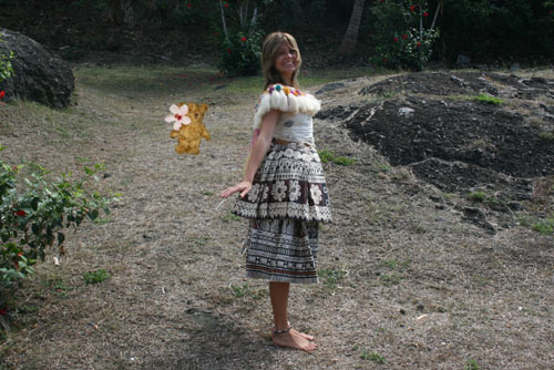 Even Ev tried it on � the skirts had many layers. This is a traditional wedding costume. I like it.