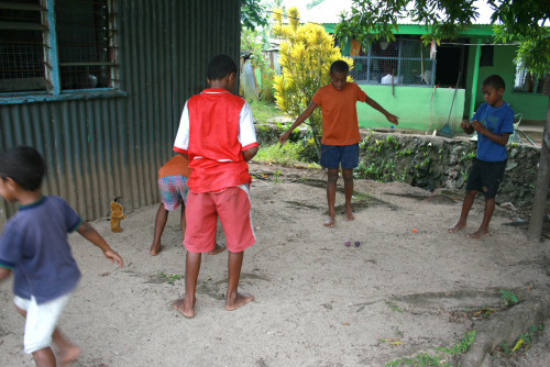 In one village I found boys playing with some spinning tops. At first I couldn't see what they were doing.
