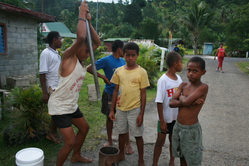 Today we walked through the village and we met a group of boys who were making a lot of noise. They had a very heavy metal rod. It was so heavy I couldn�t even lift it.