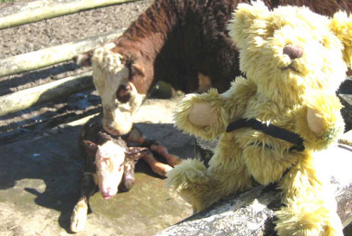 When we were staying with him he had to go to a farm where a calf was being born. A calf is a baby cow.