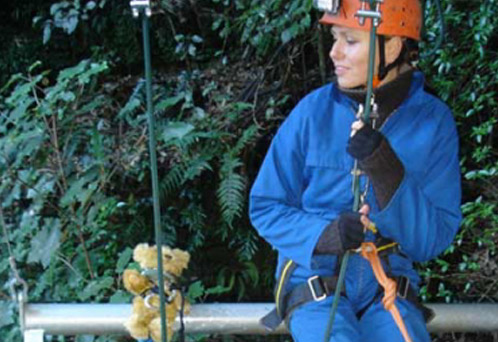 You go down to the caves on a long rope which dangles over a drop. They put you in a harness and they made a special one for me.