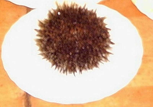 I thought this was a hedgehog but it is called Kina. It can be found in pools around rocks or out at sea.