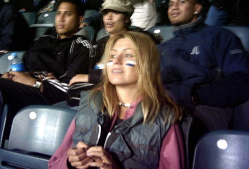Ev has painted the team colours on her face to show her support.