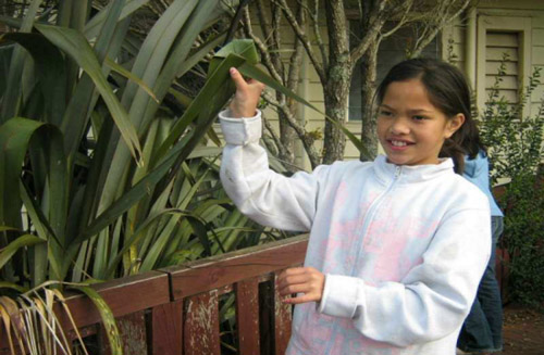 My little friend starting weaving while the flax was still on the bush. She quickly made a flower.