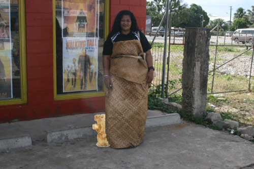 The close relatives of the dead person wear really huge mats. It's really heavy to wear.