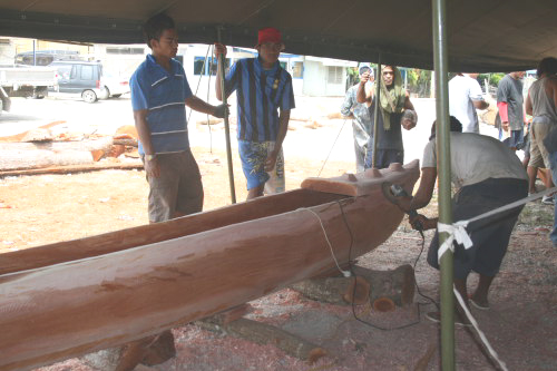 One day we were walking through Nuku'alofa, which is the capital of Tonga, and I saw some men working under a tent.